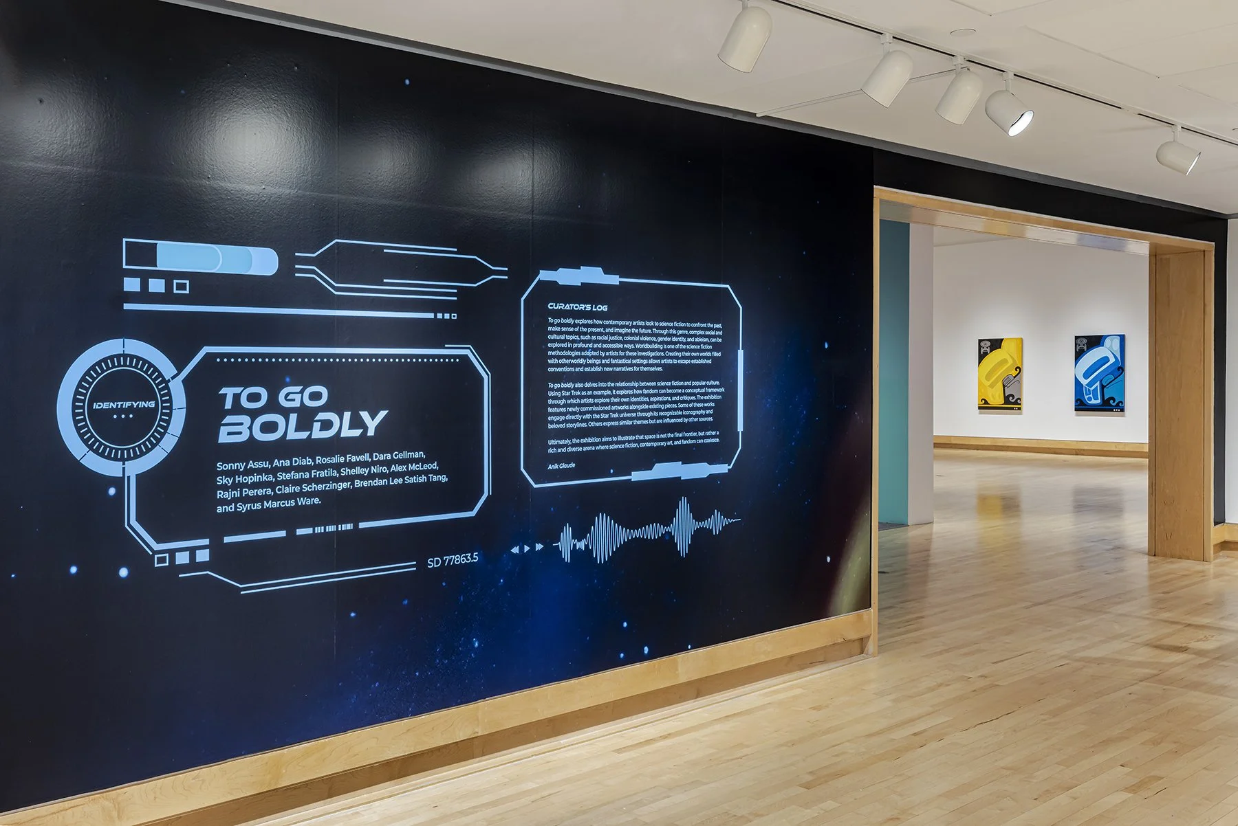 To go boldly also delves into the relationship between science fiction and popular culture. Using Star Trek as an example, it explores how fandom can become a conceptual framework through which artists explore their own identities, aspirations, and critiques. The exhibition features newly commissioned artworks alongside existing pieces. Some of these works engage directly with the Star Trek universe through its recognizable iconography and beloved storylines. Others express similar themes but are influenced by other sources.